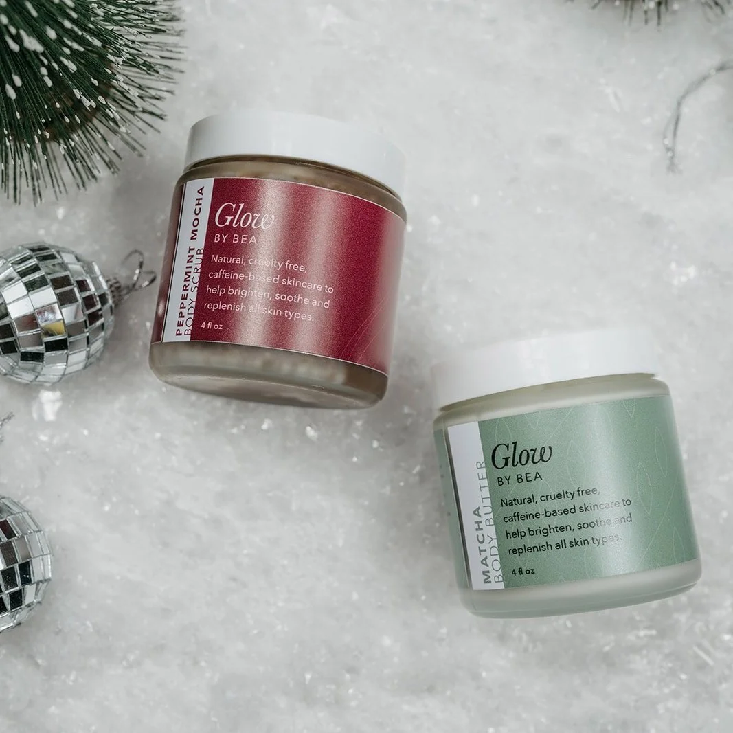 Scrub down and butter up with our new caffeine base, peppermint scented body care products. This body bundle is infused and powered with ingredients like shea butter, vitamin e and caffeine to pamper your skin, leaving it bea-utifully smooth, hydrated, and radiant!